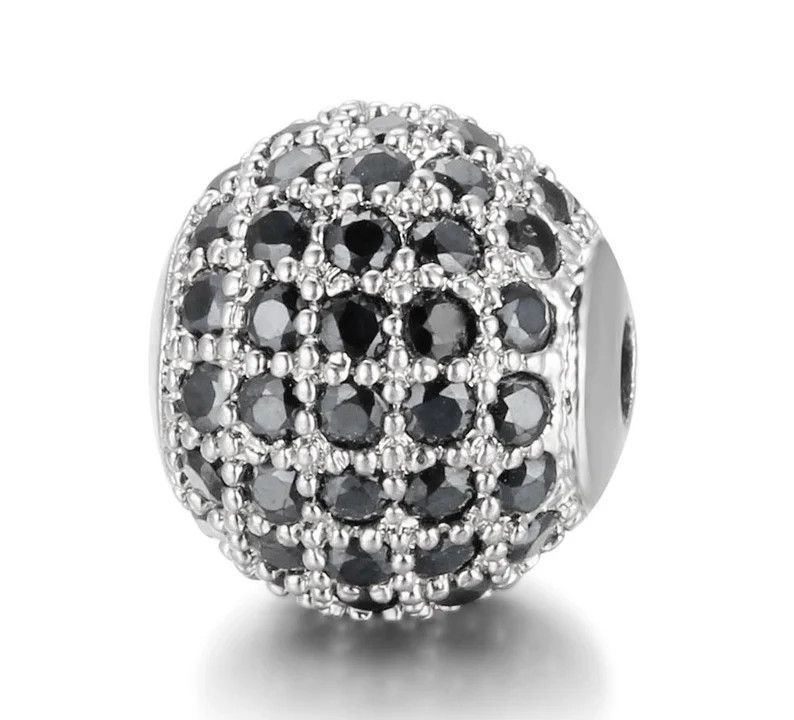 Kiárusítás! Cirkon köztes gyöngy. 10mm. Ezüst szín, fekete kristály.
