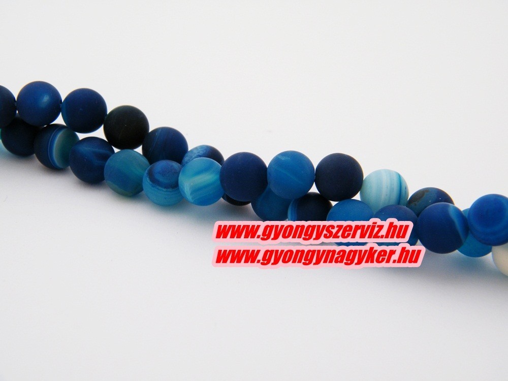 Matt kék sávos achát ásványgyöngy. 8mm. 1 szál.
