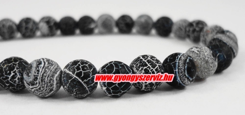 Matt, repesztett achát ásványgyöngy. 6mm. Fekete. 1 szál.